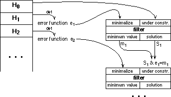 filter(S:Solution, C:Set of constraints) -> Solution, that given an existing solution S returns the subset of S that minimizes the error in satisfying the set of constraints C (the implementation of this routine effectively defines the comparator). In addition, the flat solver should provide other entries for efficiently determing if a new constraint is compatible with a current solution, and for quickly adding a constraint to a current solution, given a guarantee that the constraint is compatible.